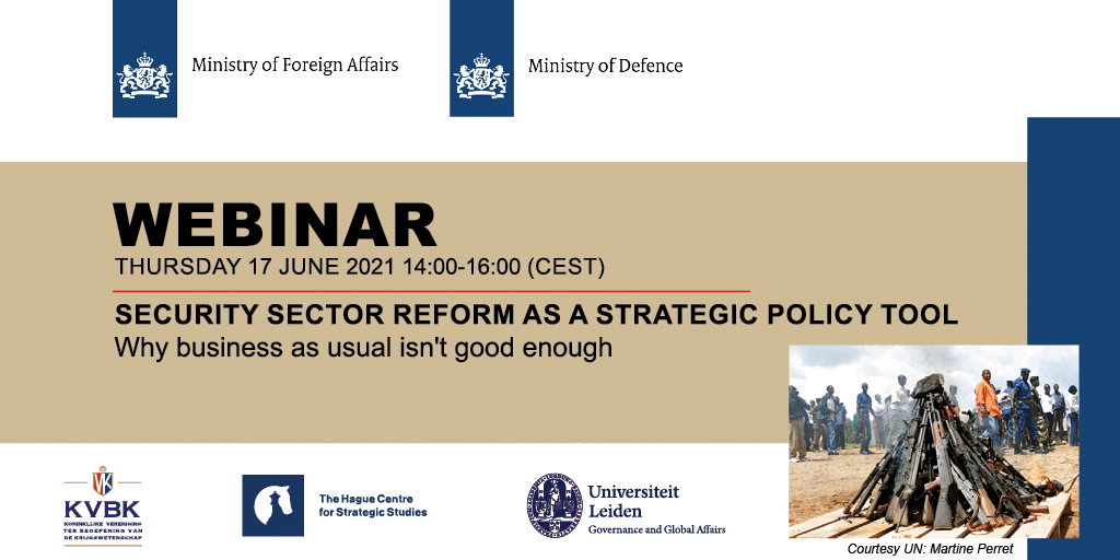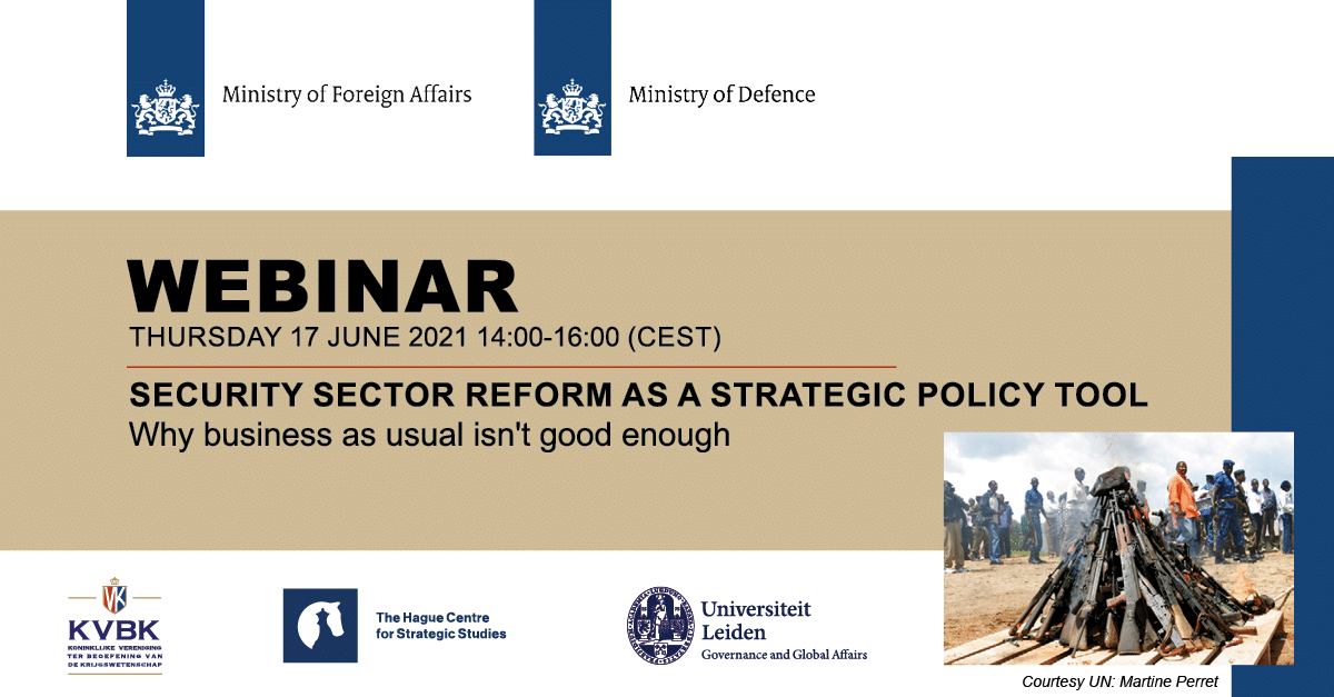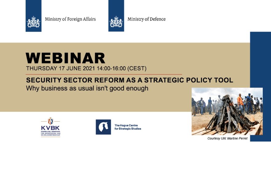 This webinar is a cooperative effort of the Netherlands Ministries of Foreign Affairs and Defence. It is supported by HCSS and KVBK. In this webinar, several subject matter experts will present and discuss their views and approaches concerning Security Sector Reform (SSR) as a strategic policy tool.