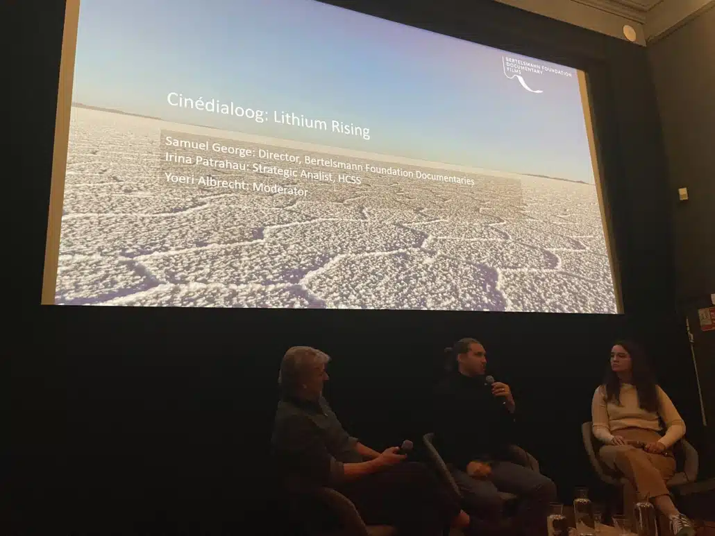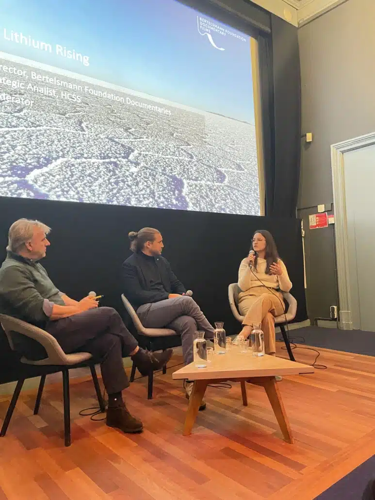 After the film screening we speak with director Samuel George of Bertelsmann Foundation Documentaries and Irina Patrahau (Chair of the Energy Security and Critical Minerals programmes at The Hague Centre for Strategic Studies) about the global scramble for lithium.