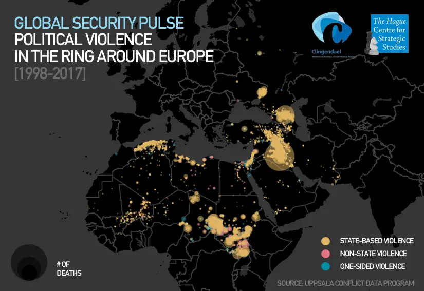 The Global Security Pulse (GSP) is made using an advanced horizon-scanning methodology that relies on the manual monitoring of hundreds of validated foresight resources, the structured coding of signals, and expert assessment. The GSP product is based on the Clingendael Radar and has been further developed by The Hague Centre for Strategic Studies and the Clingendael Institute. It is part of the Strategic Monitor Program, which receives funding from the Dutch Ministries of Foreign Affairs and Defense.