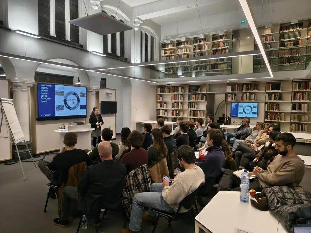 In this lecture, hosted by GA! Think Tank in Utrecht, Sofia Romansky gave a crash course on the intersection of artificial intelligence and the military domain, as well as the emerging challenges and opportunities. She emphasised that the fundamental obstacles to the effective and responsible integration of AI into security and defense are both technical and human; they require us to contend not only with complex socio-technical systems, but also create institutional safeguards to ensure that human users are able to interact with these systems in optimal ways. Findings the solutions to these problems in turn involves adopting an interdisciplinary mindset and a willingness to ask the difficult questions.