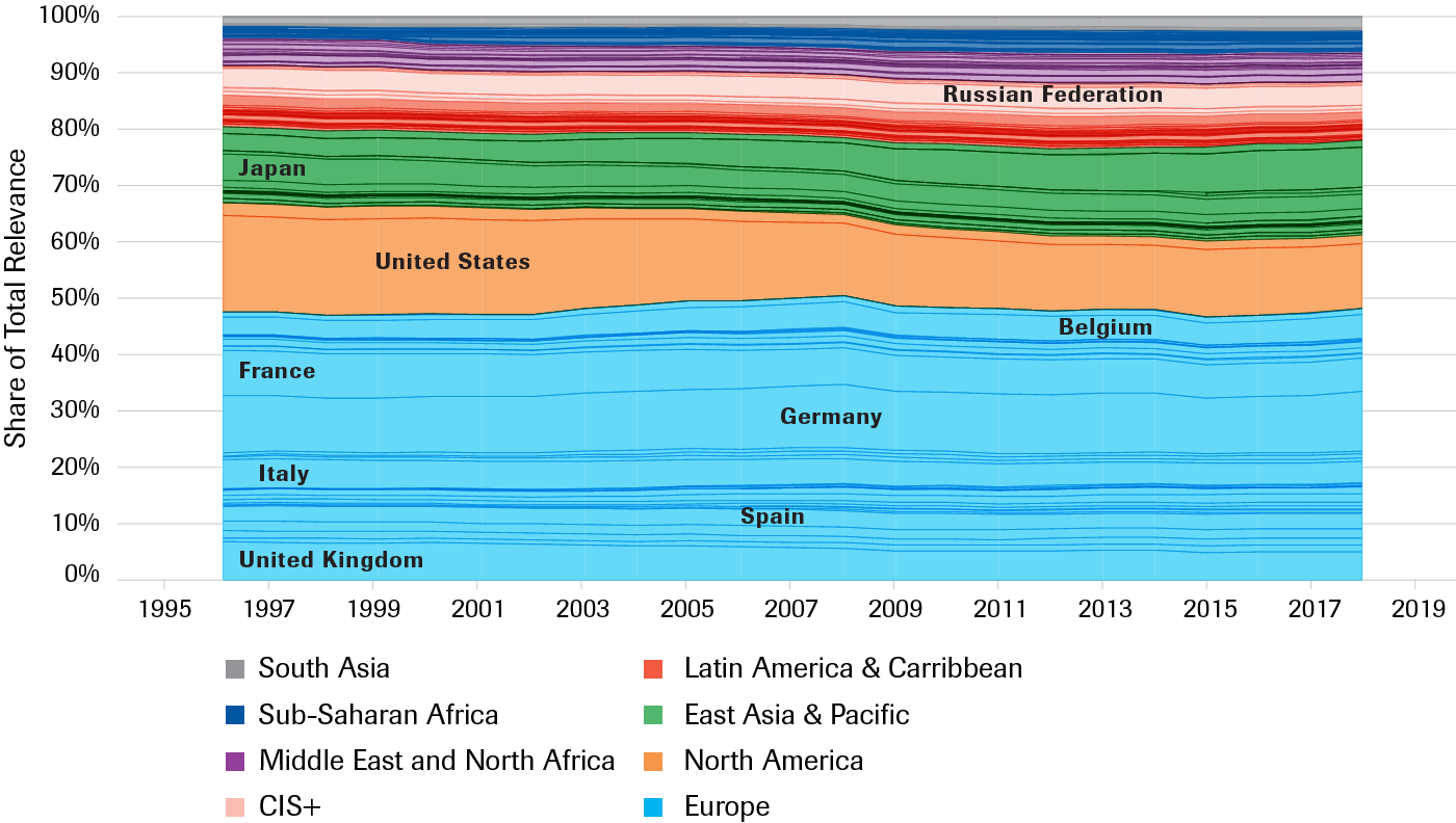 Overall levels of absolute military expenditures are increasing internationally, albeit not significantly, and not when measured as a percentage of gross domestic product (GDP). Over the ten-year period from 2008 to 2018, expenditures increased by 13.2%, now amounting to $1.78 trillion in total.[37] The only regions with a significant increase over the past decade are East Asia, Oceania, and the Middle East.[38] At the same time, military expenditures saw a decrease in various other regions. Since around 2015, Europe and the US have started to slightly increase their expenditures again, but in other regions, for instance in Latin America, the downward pattern continues or expenditures remain at a low level (relative to the overall level of military expenditures, which are still by far the highest in North America).